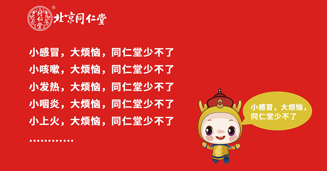 通过一句话,传递两个核心信息,第一,同仁堂不仅只有成年人用,也有专业的儿童系列药品,第二,消费者心目中的建立起同仁堂儿童药品是系统、安心、可信赖、治愈的潜在印象。